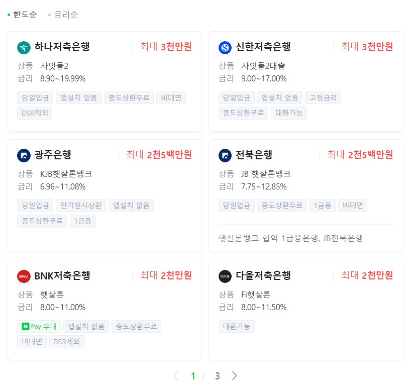 자세한 한도 및 금리는 해당 은행권으로 상담을 진행하여