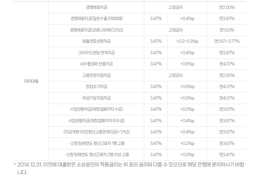 3. (사업종료) 자금별 대출금리(매분기별로 변동)