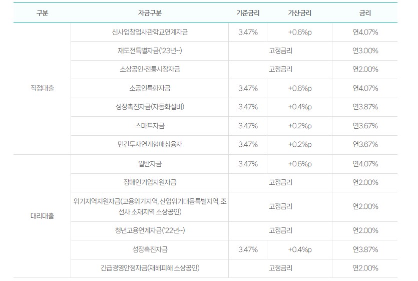 23년 3/4분기 정책자금 금리(’23. 7. 10.부터 적용)