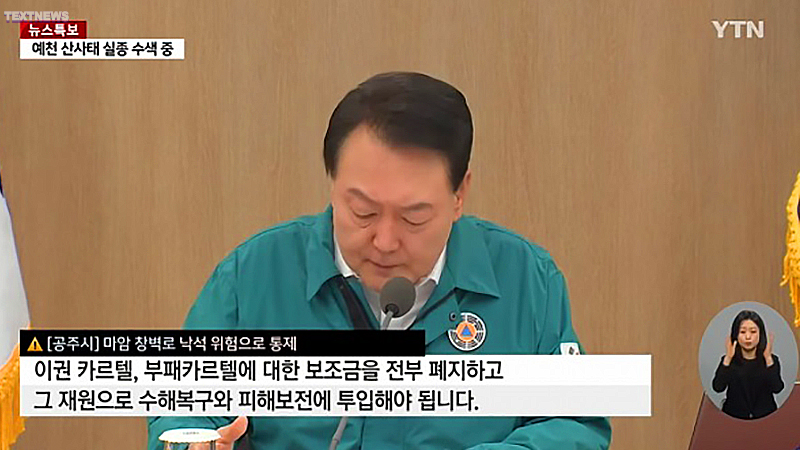 - 혈세가 이권 카르텔에 사용돼 개탄, 사법처리(지난해 9월 간담회)