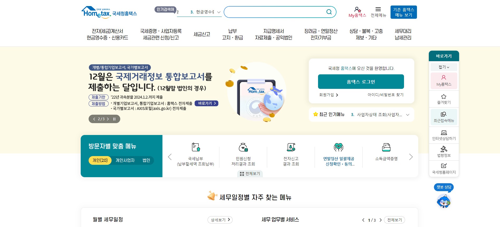 - 홈텍스 웹사이트에 접속합니다. (https://www.hometax.go.kr)